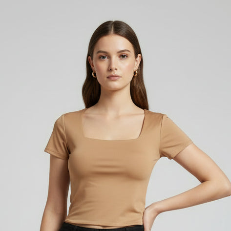 Body Manga Corta Escotado Caramelo